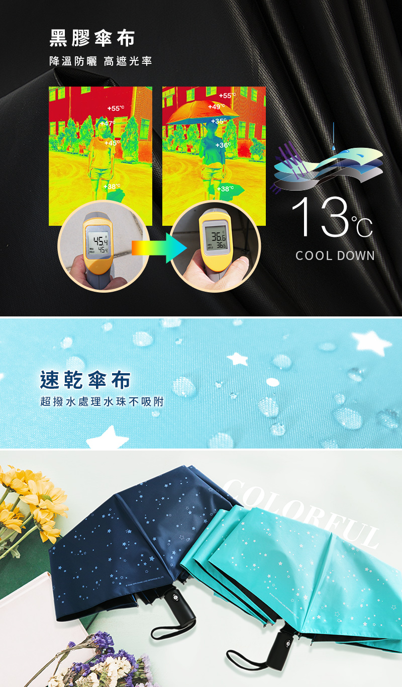 B6290NJ2-STAR降溫13度黑膠自動開收傘