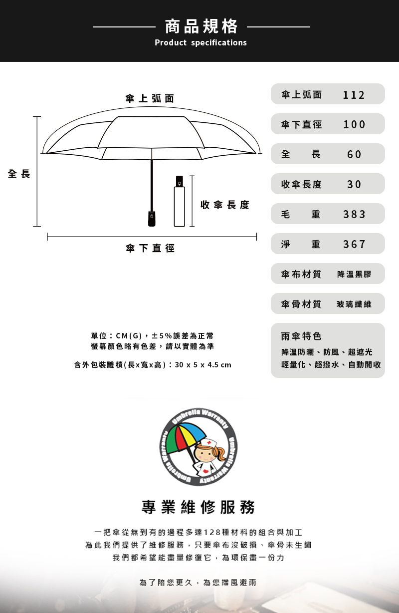 / B6290NJ2-STAR降溫13度黑膠自動開收傘