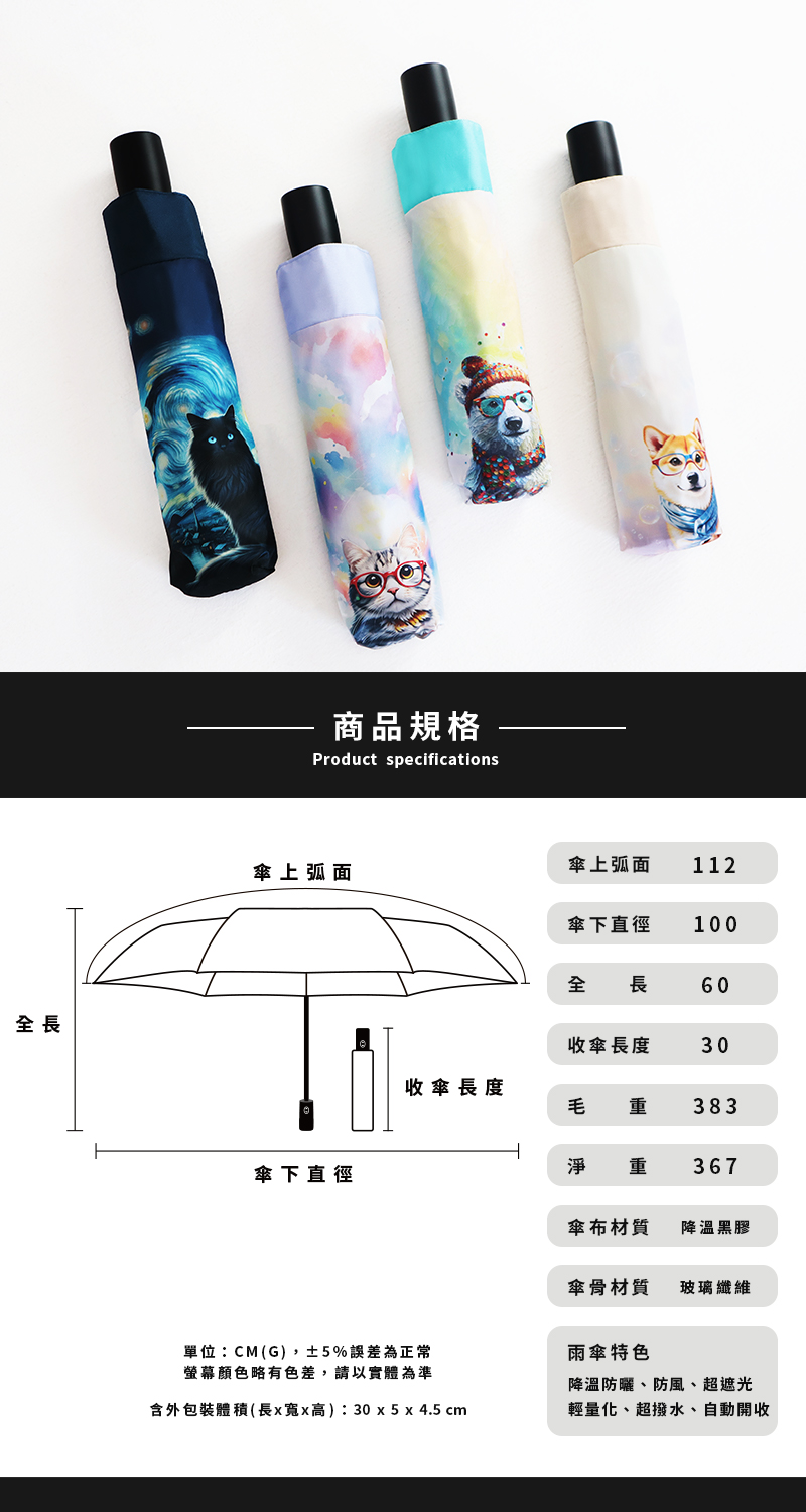 / B6290NK-萌寵 降溫13度黑膠自動開收傘